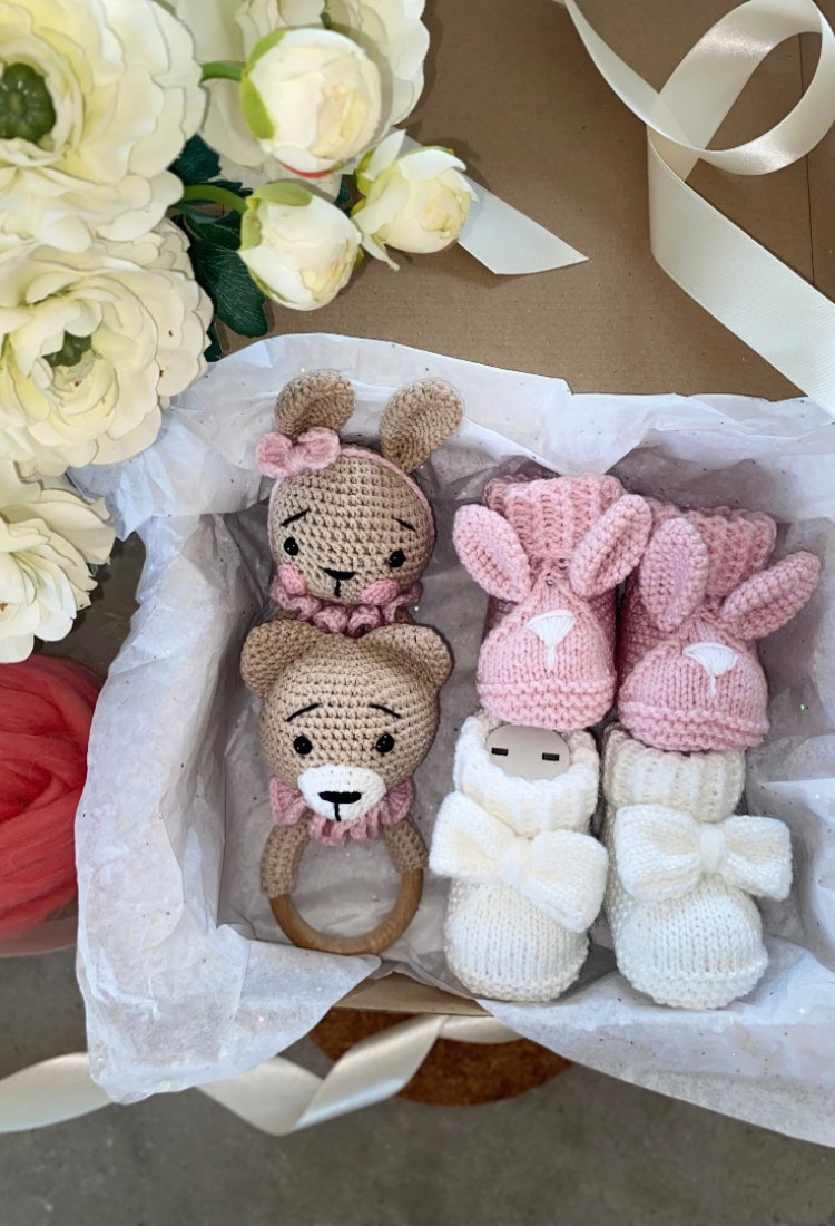 Πλεκτό Χειροποίητο Βρεφικό Σετ "Rabbit and Bear Mix"