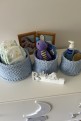 Τα χειροποίητα καλάθια είναι ένας τέλειος τρόπος για να οργανώσετε τα βρεφικά αξεσουάρ και να συμπληρώσετε την εμφάνιση του εσωτερικού του δωματίου. Είναι ένα μοναδικό κόσμημα που θα μπορούσε να υφανθεί σε συγκεκριμένο χρώμα κατόπιν επιθυμίας του πελάτη.